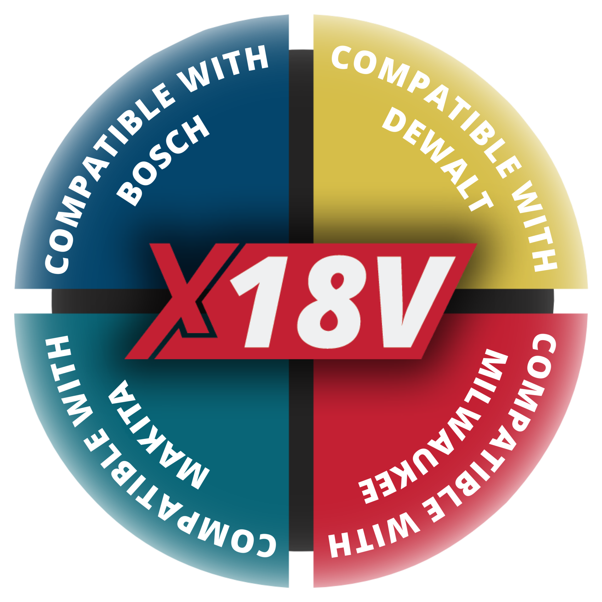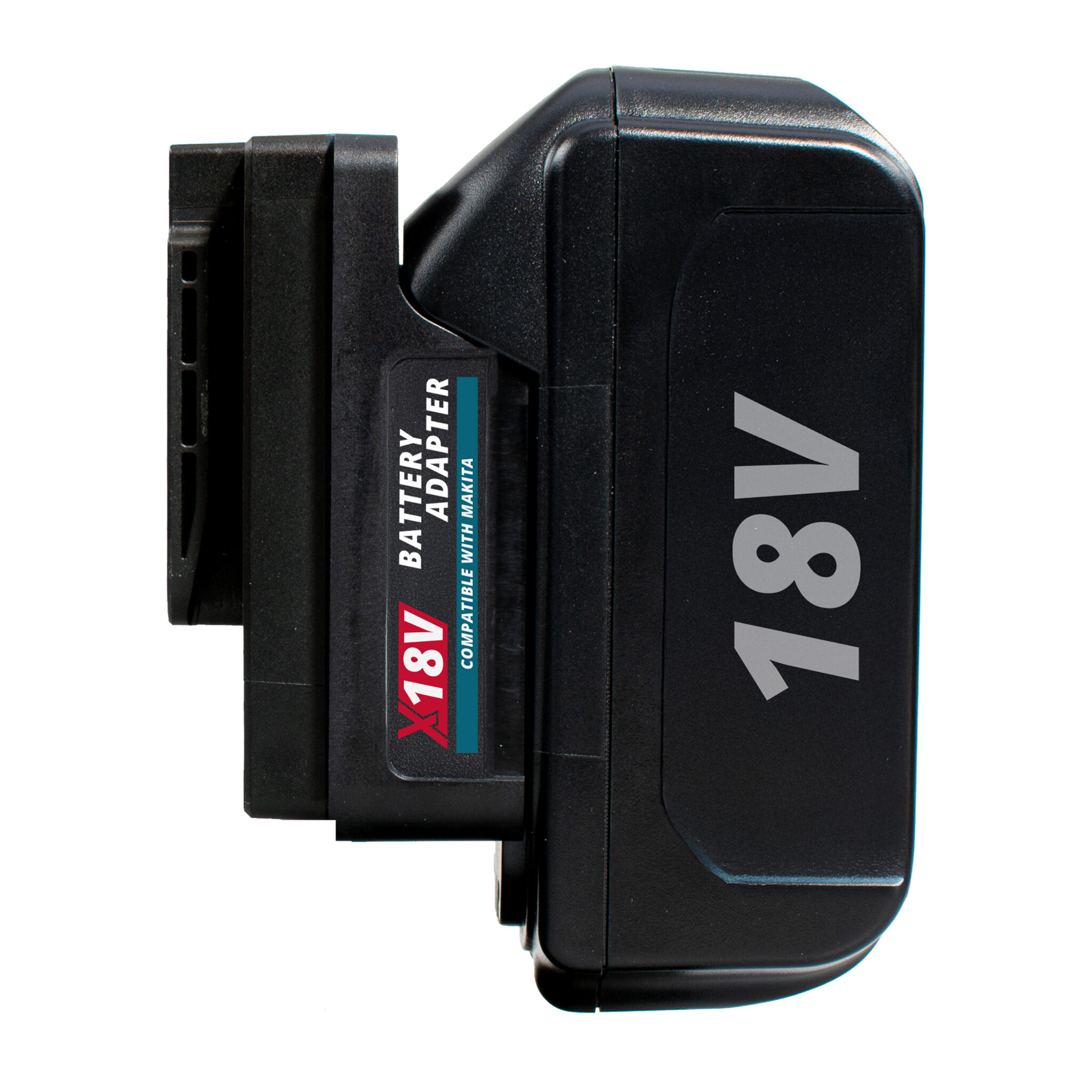 De X18V set bestaat uit een adapter voor jouw andere favoriete merk en een Support Base voor stabiliteit.